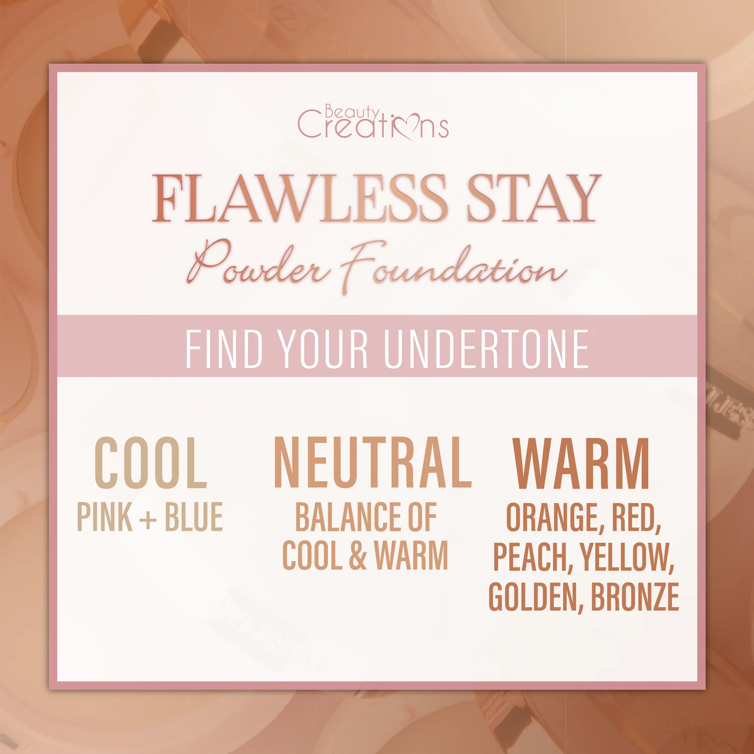 Achieve a flawlessly radiant and velvety complexion with our fan favorite, Flawless Stay Powder Foundation. This innovative pressed powder offers buildable coverage that lasts all day! Pair with our Flawless Stay Liquid Foundation for a full proof glam. With 18 stunning shades to choose from, you can use our powder foundation to highlight and contour your complexion for added dimension. Compact and ready for an easy touch up on the go, this multi-tasking powder is a Beauty Creations staple.
