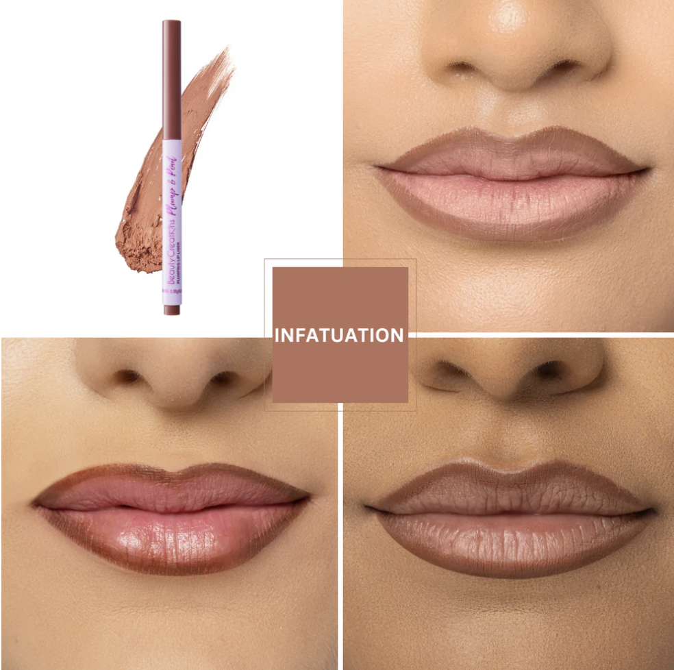 Our plumping game just got better with the Plump & Pout Lip Liner—the ultimate lip liner to define, plump, and enhance your pout. Specially formulated to give a natural plumping effect, this lip liner creates a fuller, more defined look that lasts all day. Whether you’re lining your lips or using it to fill them in, the creamy texture glides on smoothly, providing the perfect base for your lip color.